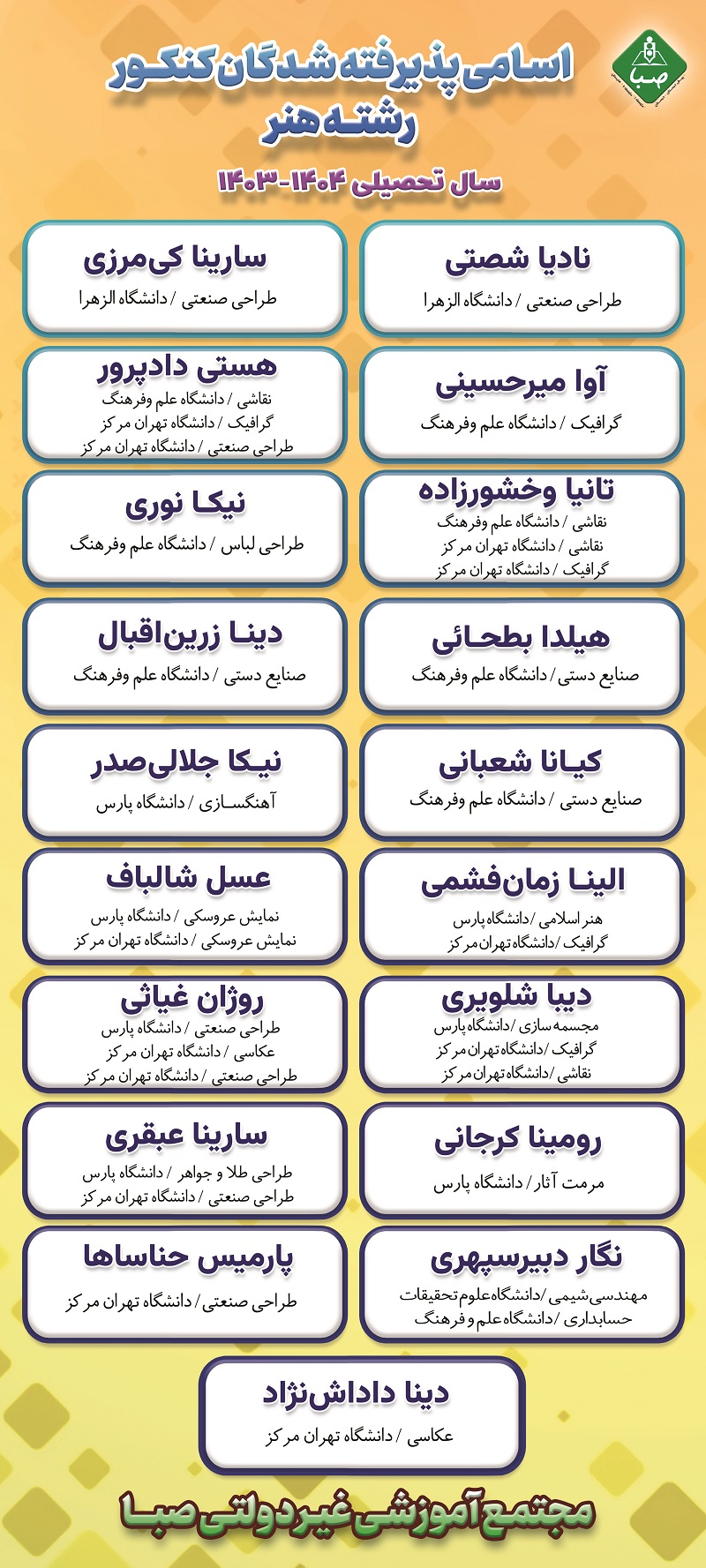 اسامی پذیرفته شدگان کنکور سراسری سال تحصیلی 99-1400